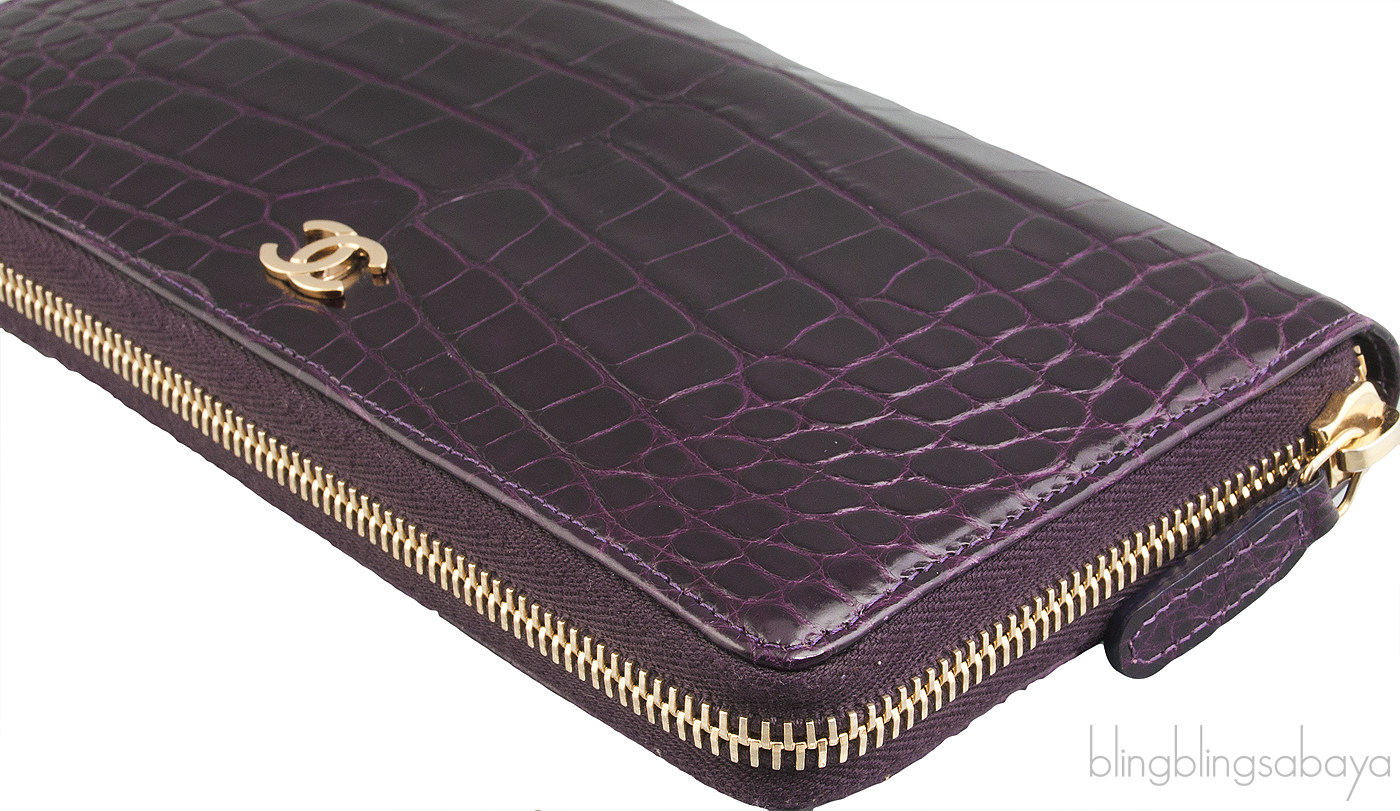 This ultra rare Zippy Wallet from Chanel is crafted in exotic crocodile Leather accented beautifully accented with the golden Hardware. This wallet features a round zip closure with cute CC metal logo at front and leather zipper pull. Interior is fully lined with leather and has two major compartments divided with zip pocket at front, two bill slots and eight credit card slots.