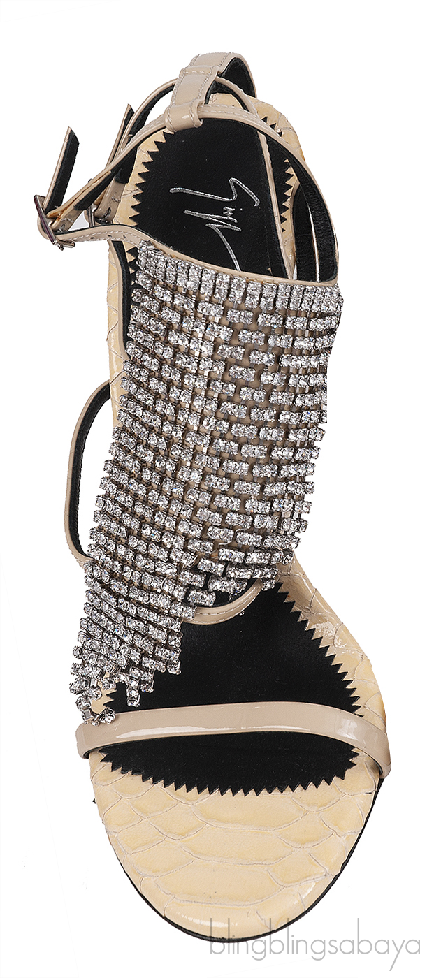 Python Embossed Beige Crystal Sandals from Giuseppe Zanotti!