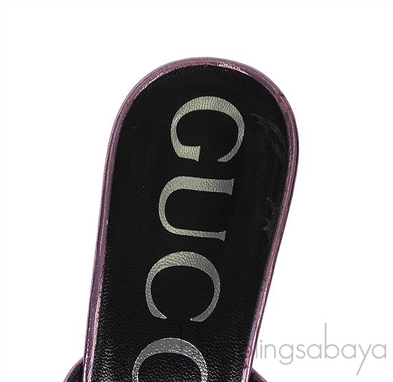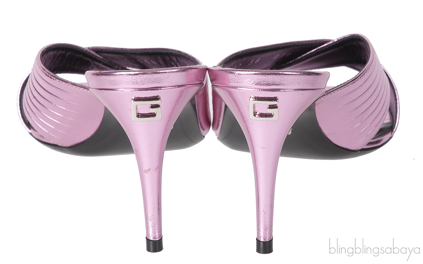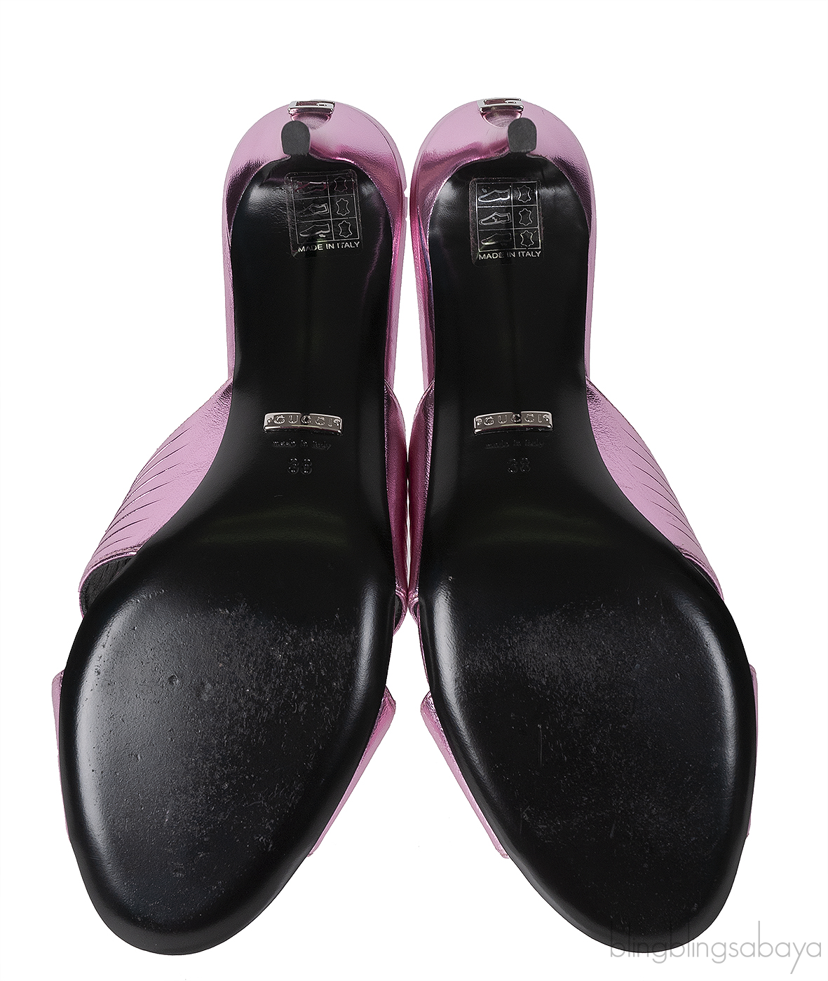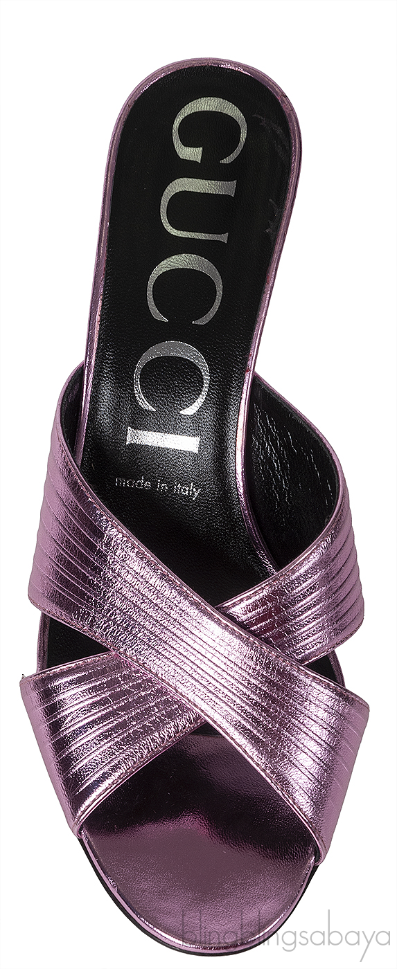 These Criss-cross Metallic Pink Sandals from Gucci are crafted from metallic pink leather upper with black leather lining.