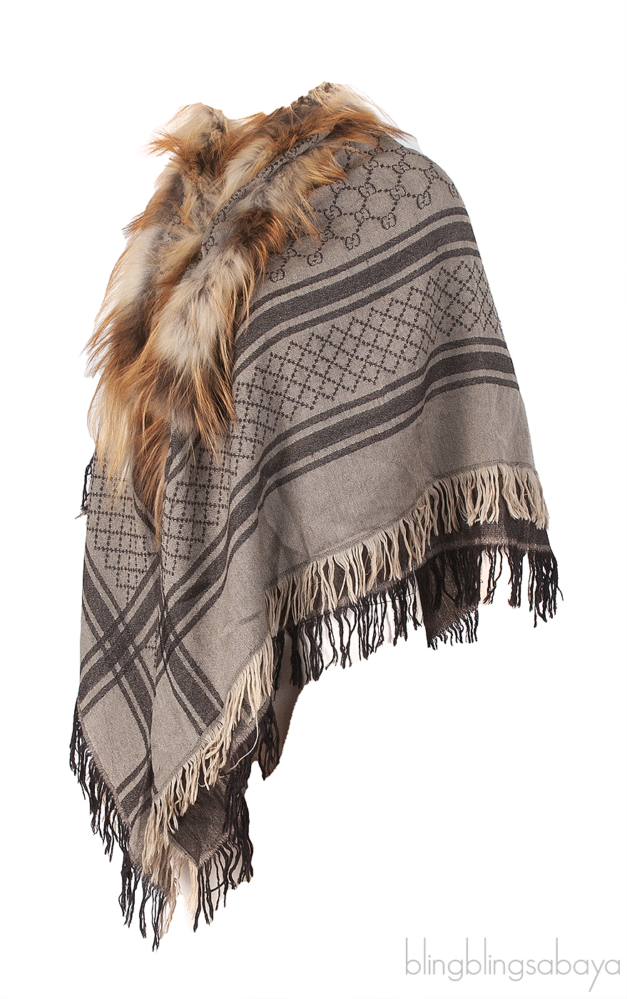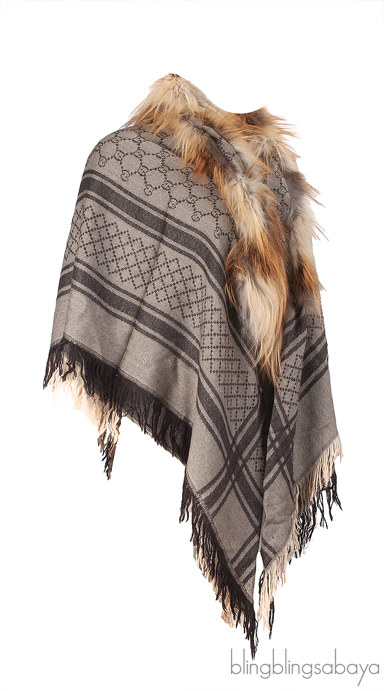 This Fox Trimmed GG Patterned Stole from Gucci is crafted from 70% Wool and 30% Silk Fabric with 100% Fox fur accent. This stole or scarf features a guccissima pattern and stripe print, fox fur detailing and fringed edges.