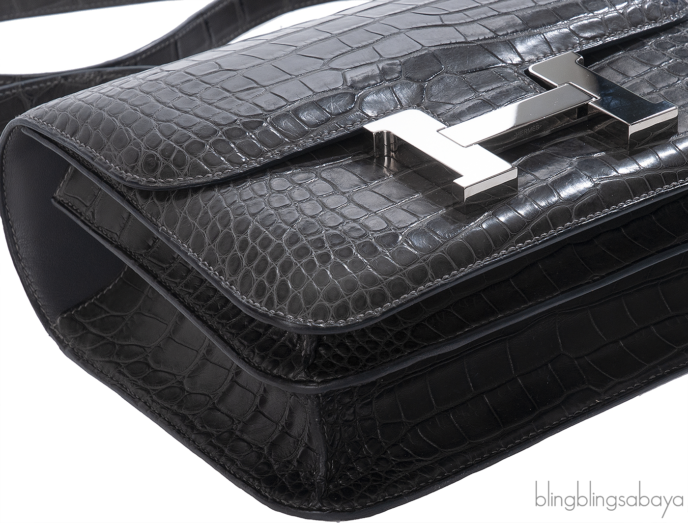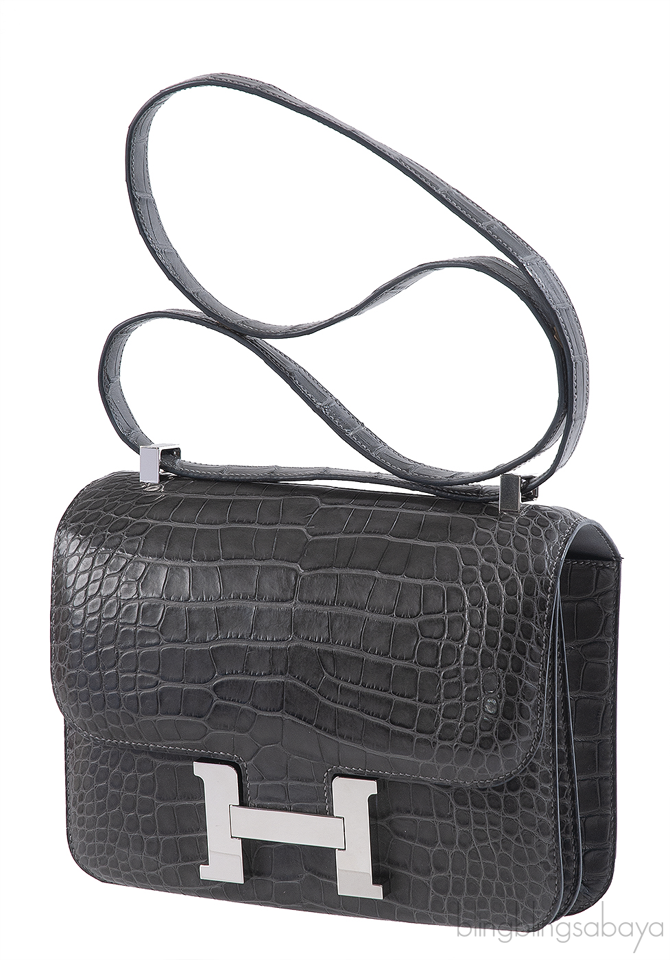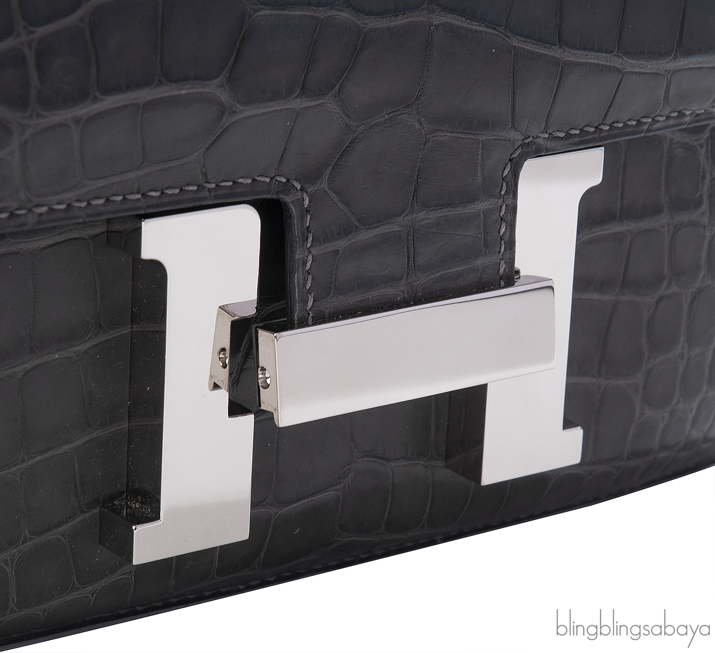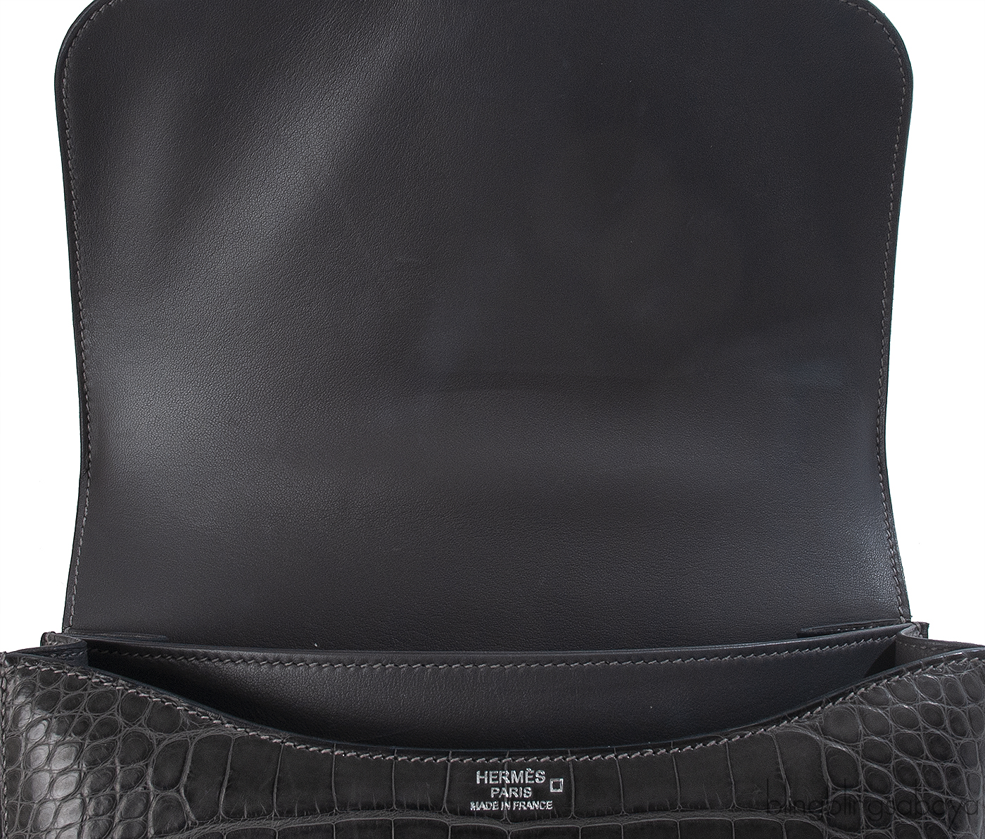 This Hermes Constance 24 Alligator Matte Graphite PHW is crafted from exotic alligator crocodile leather in astonishing grey or graphite color perfectly accented with palladium hardware.