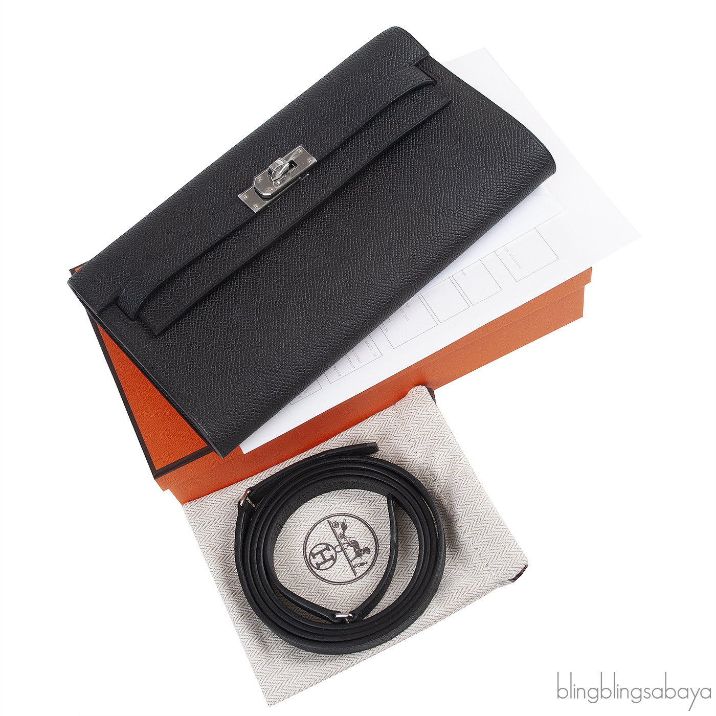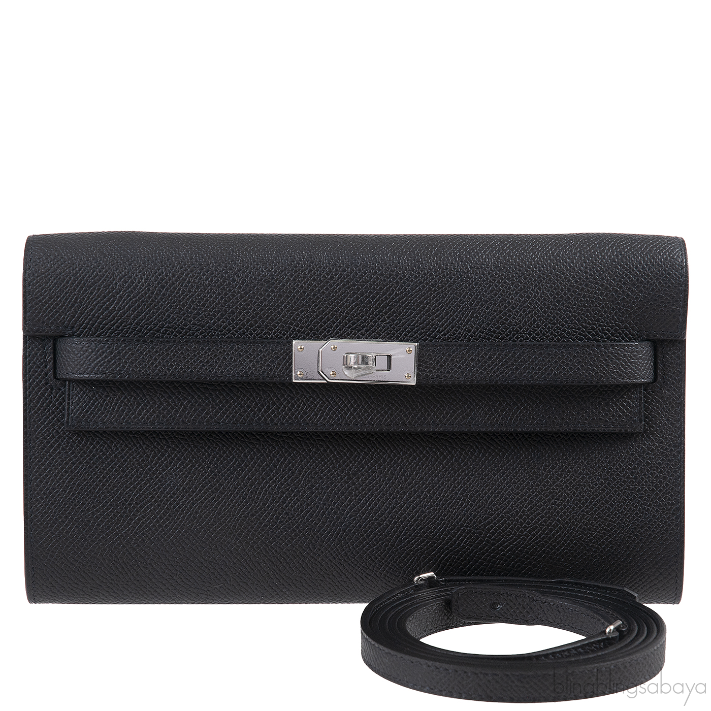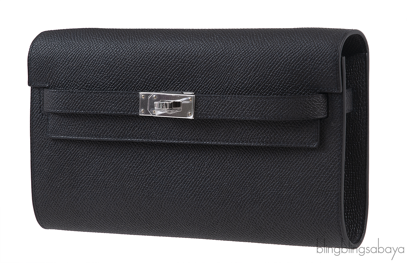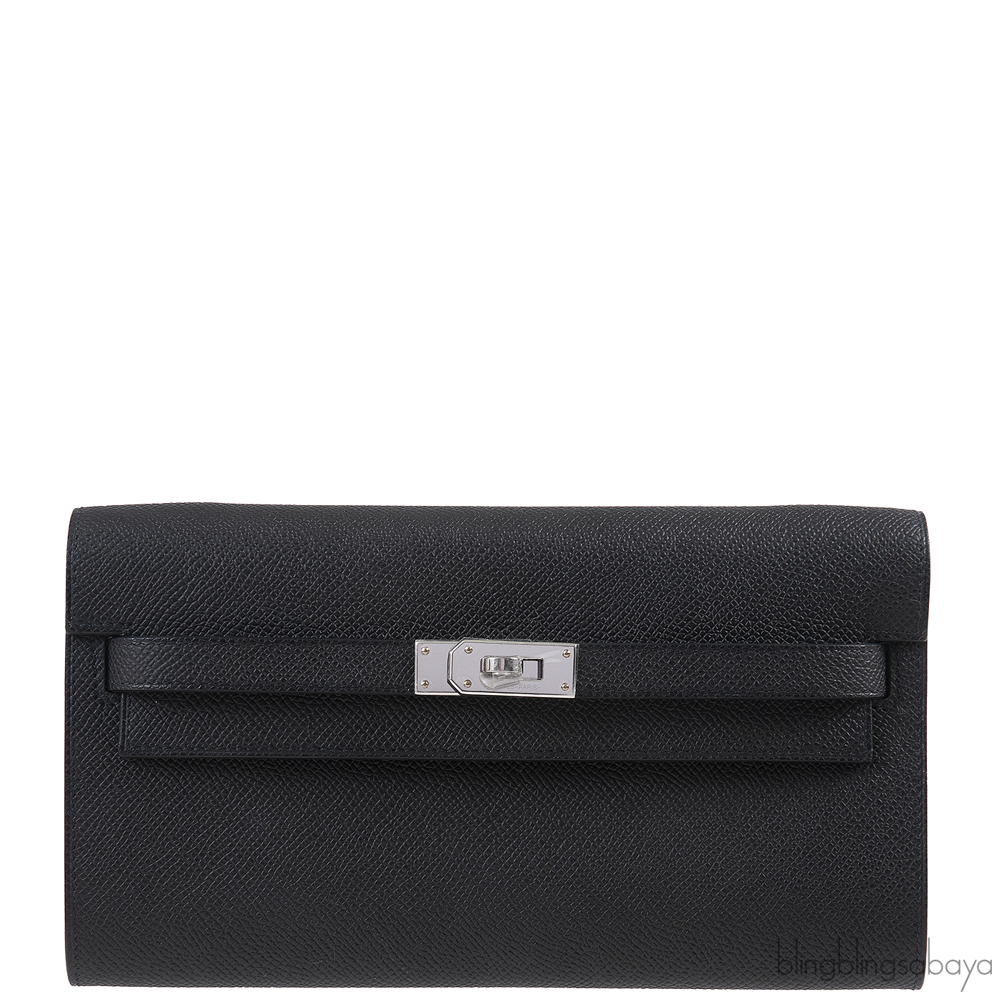 Hermes Kelly Classique To Go Black Epsom Wallet PHW