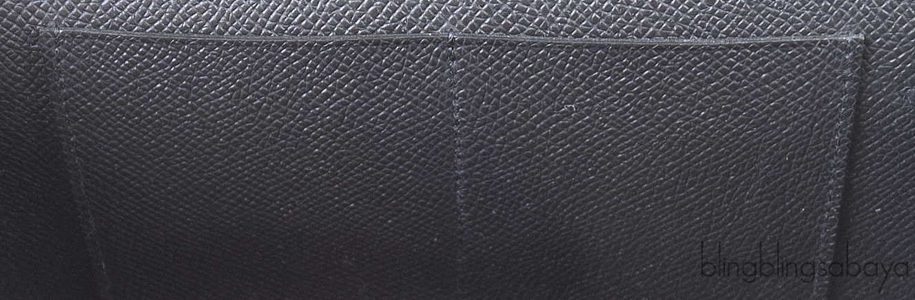 Interior is fully lined with leather revealing 4 credit card slots, zipped change purse. It has a removable shoulder strap transforms this iconic style into a multi-functional piece - switch from a classic wallet to a crossbody bag.