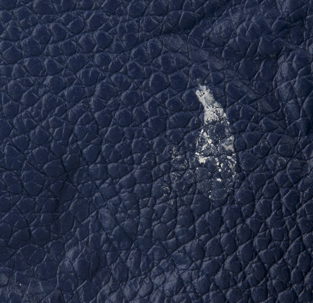 This bag features two top rolled leather handles and a removable shoulder strap. It has an interior lined with textile with multiple pockets and compartments for easy organization.