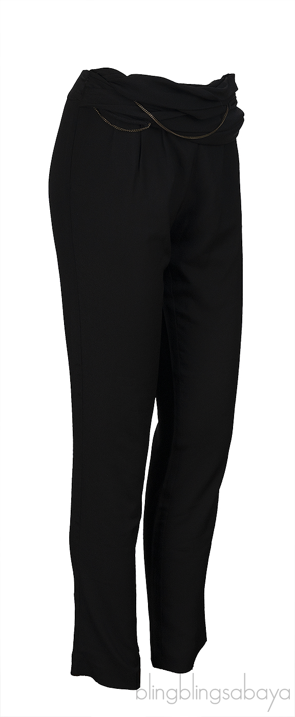 This Iro Black Chaim Embellished Trouser is crafted from black fabric featuring a gathered fabric at waist with chain embellishment, side zip fastening and side pockets