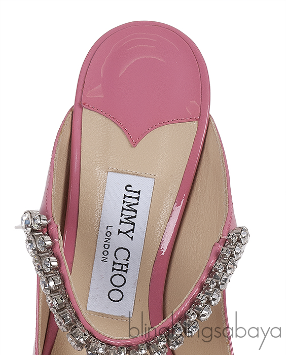 These Bing Pink Crystal Embellished Mule from Jimmy Choo are crafted from pink patent with leather lining. These mules features a pointed toe, leather lined insole, crystal embellishment across the vamp, leather lined sole and stiletto heels measuring 100 mm high.
