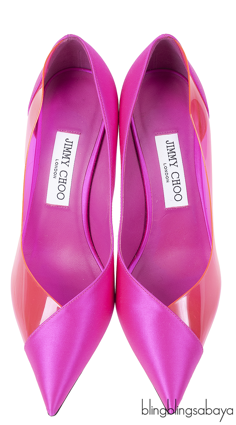 Jimmy Choo Fuchsia Satin Hot Pink PVC Heels 38
