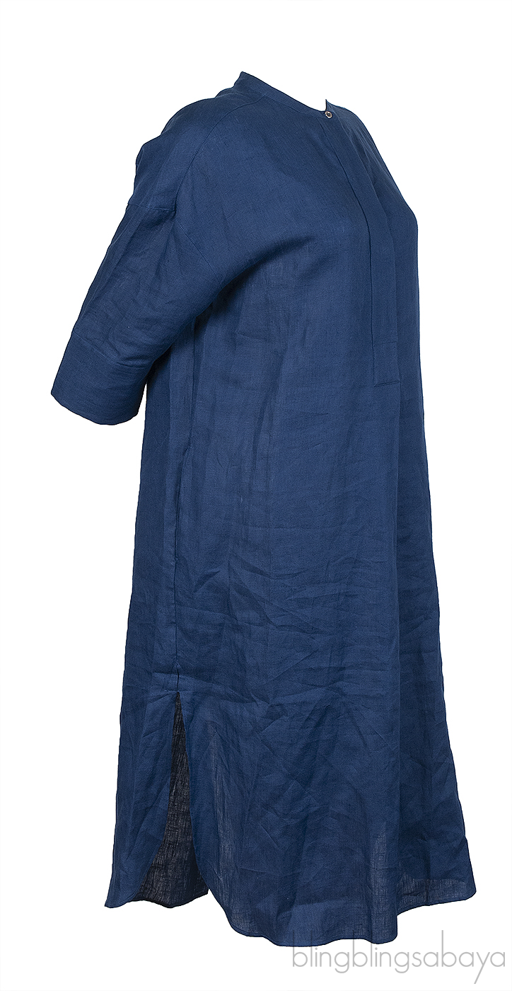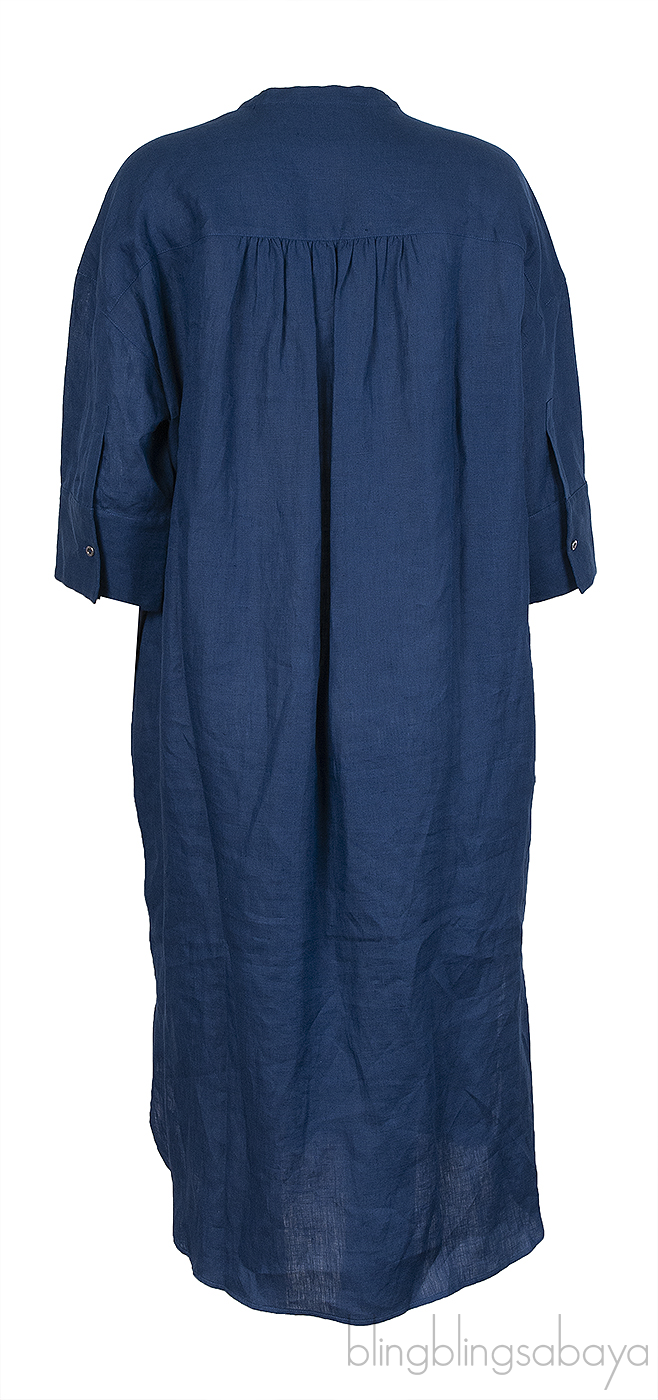 This Loro Piana Lindsie Solaire Linen Shift Dress is crafted from 100% Linen Fabric in blue hue. This dress features a round neckline, third-quarter sleeves, half button front placket, side slits and hem hits around the knee.