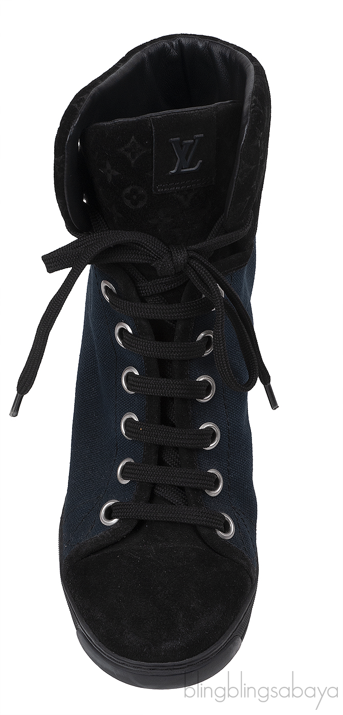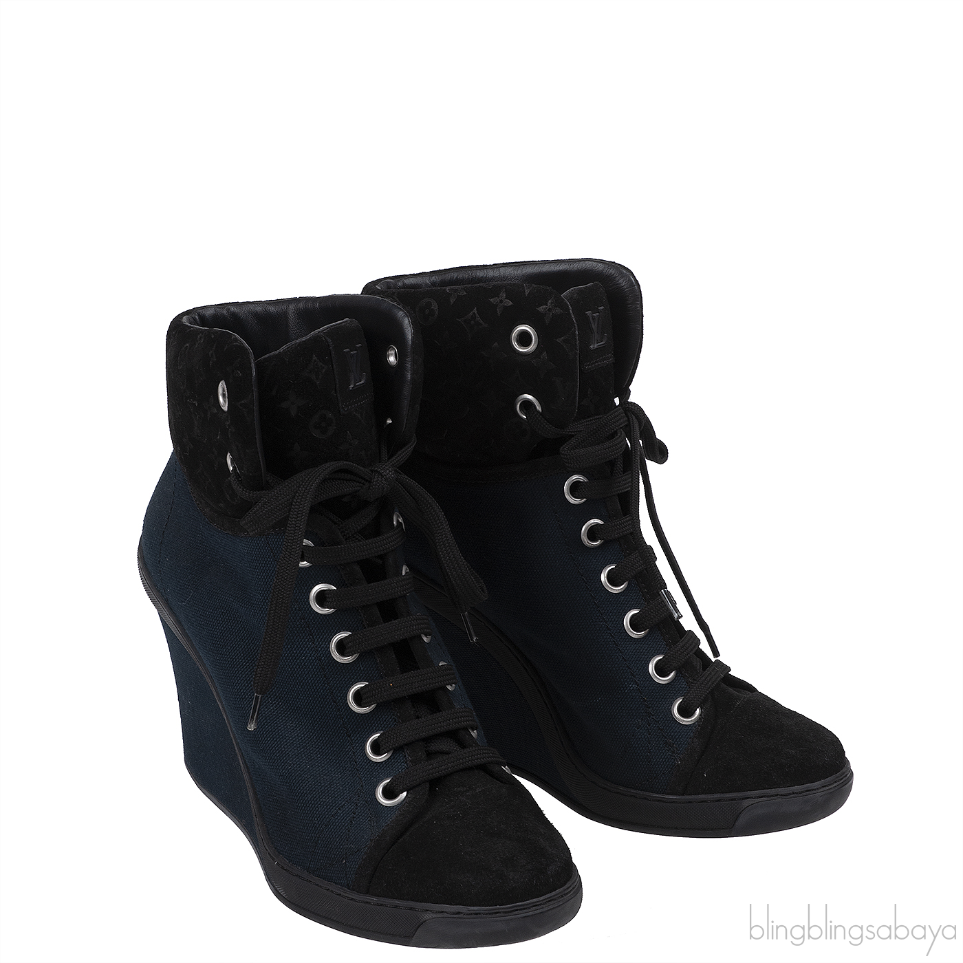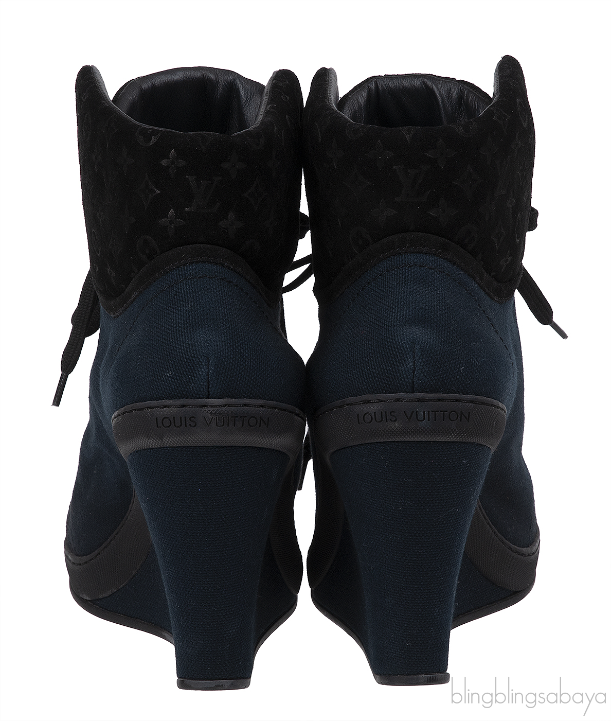 Louis Vuitton Blue & Black Monogram Wedge Boots