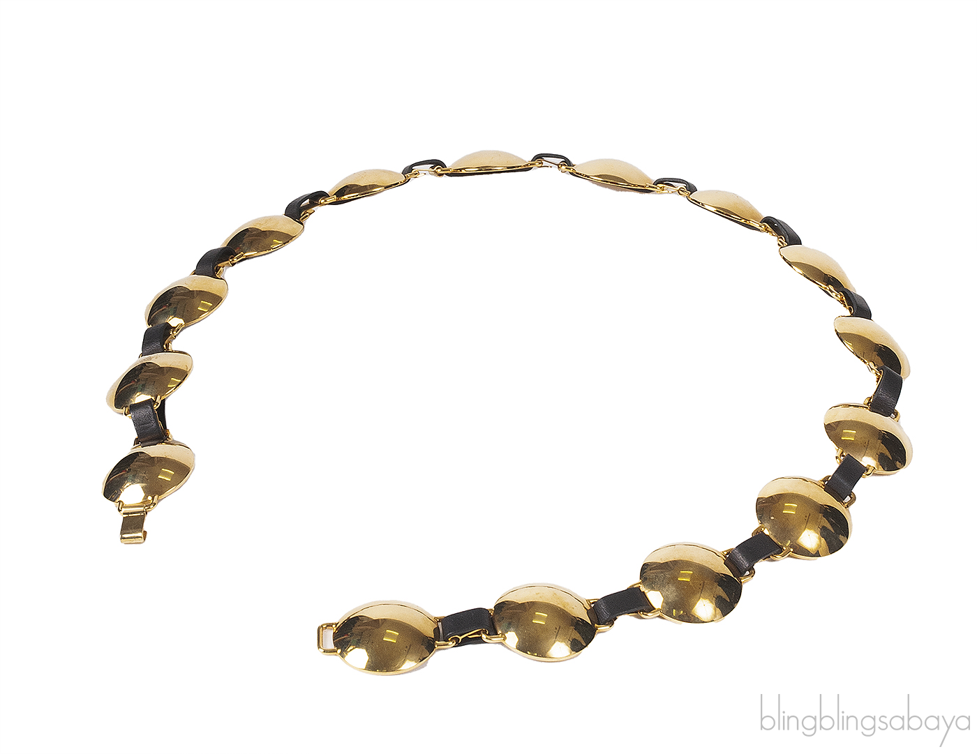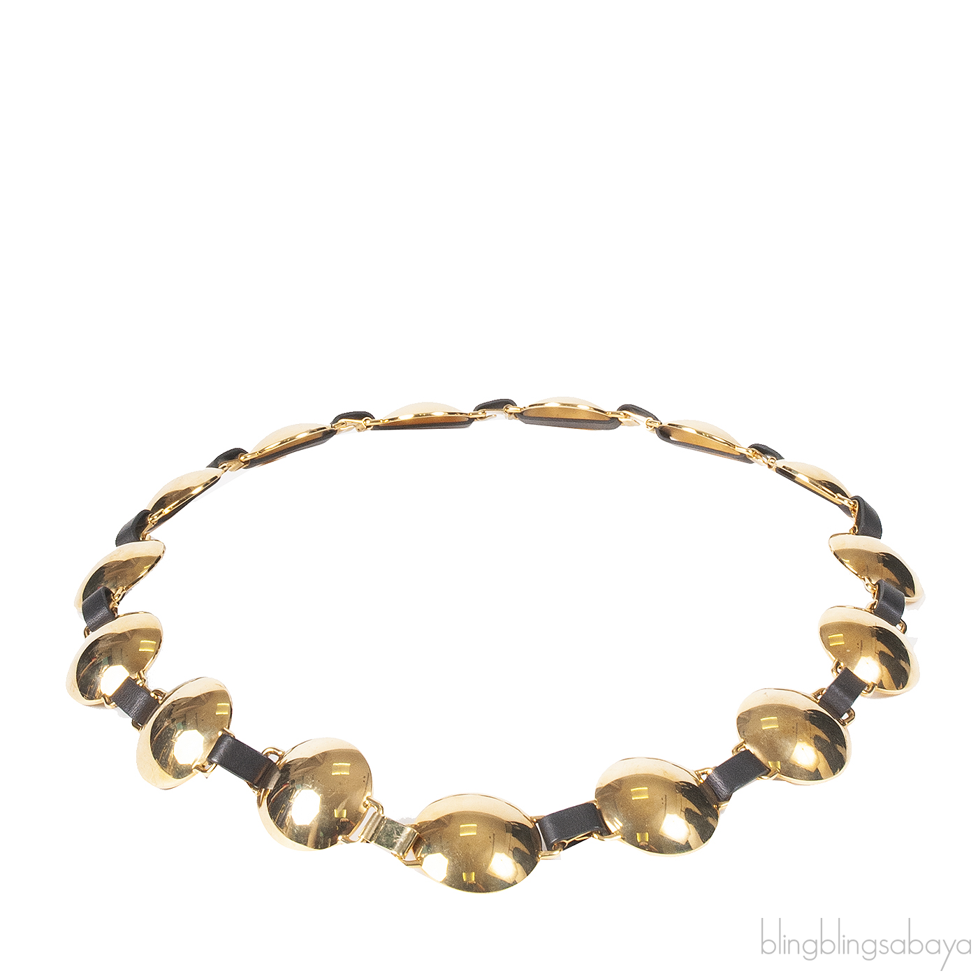 This stunning belt from Marni is made of Black Calf Leather associated with Gold Tone brass link disc with hook clasp fastening.