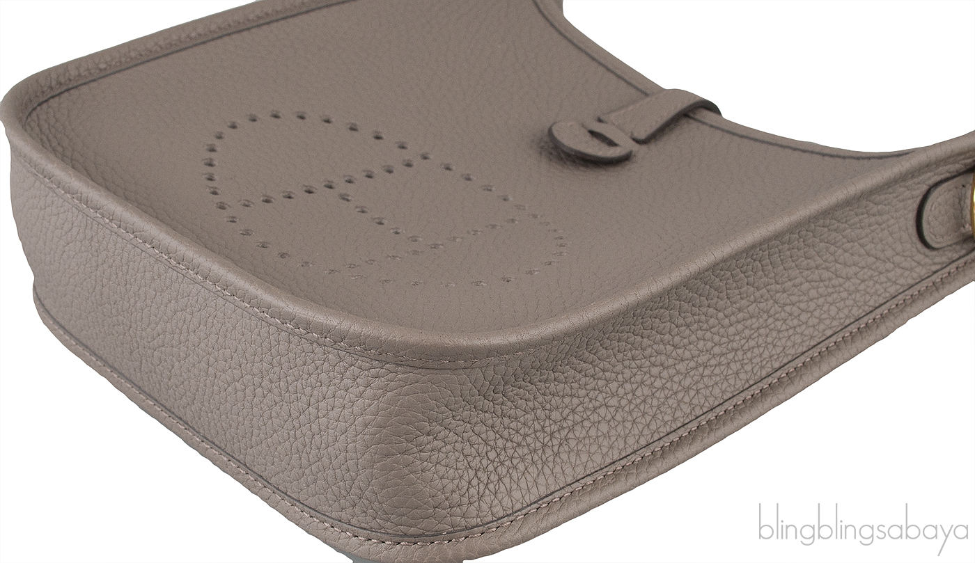A timeless gorgeous and stylish look brand new Mini Evelyne Cross body bag. This fabulous cute mini bag is crafted in Taurillon Clemence Leather in Gris Etain color . It features a perforated "H" on the leather matched with gold hardware.