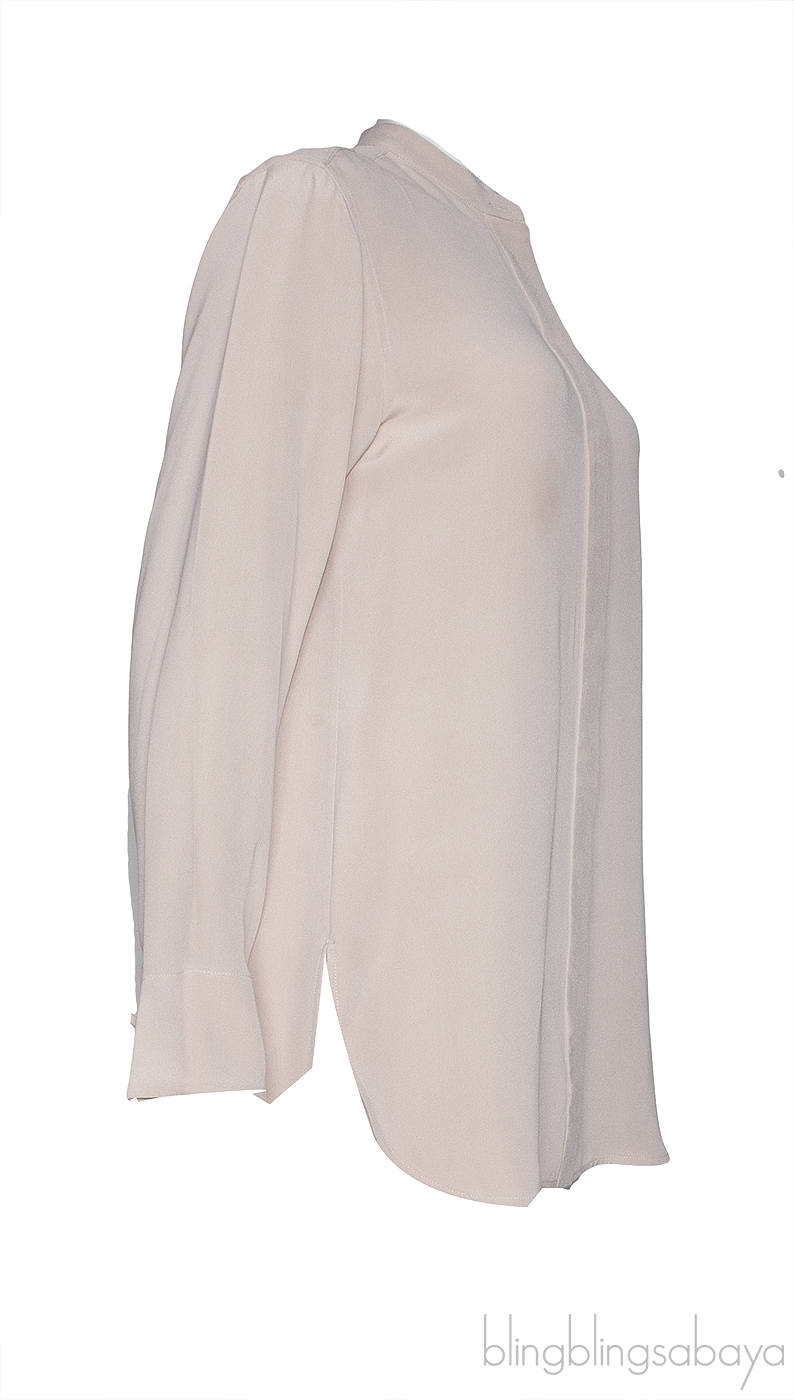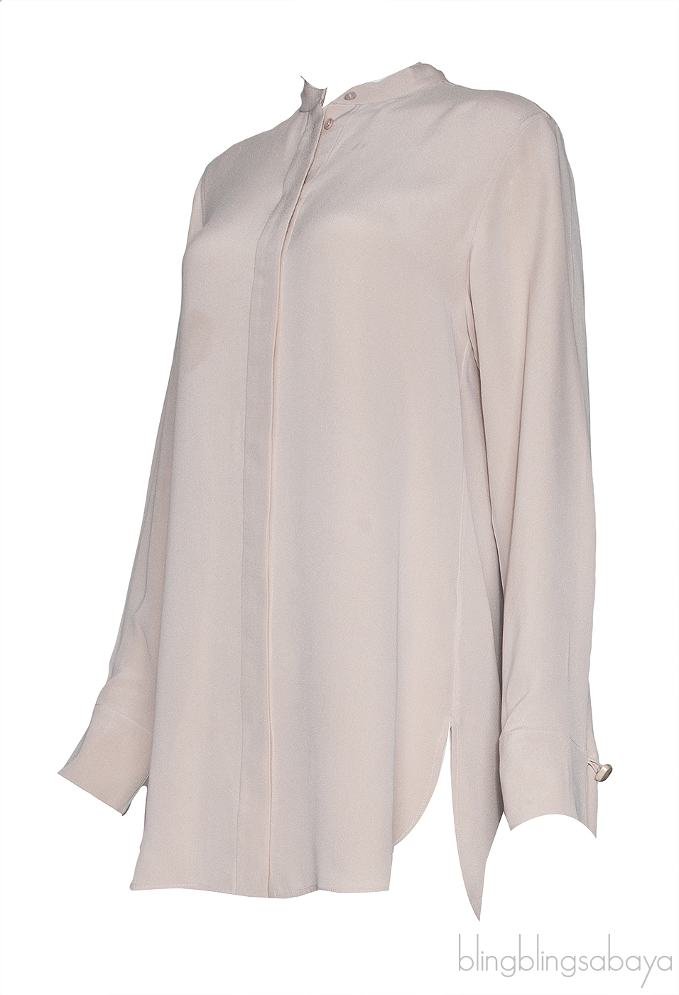 This Nude Long Sleeve Shirt from Joseph is crafted from 100% Silk Fabric in matte nude color. This shirt features a chinese collar, long sleeves and round hemline with side slits.