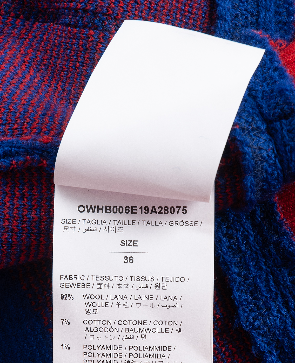 This Off-White Blue Flag Cardigan is crafted from a premium wool-blend, composed of 92% wool, 7% cotton, and 1% polyamide. Designed in a rich blue hue, it features a ribbed knit Y-collar, cuffs, and hem accented with red and white striping. Finished with a button-front closure and front patch pockets for a refined yet relaxed silhouette.