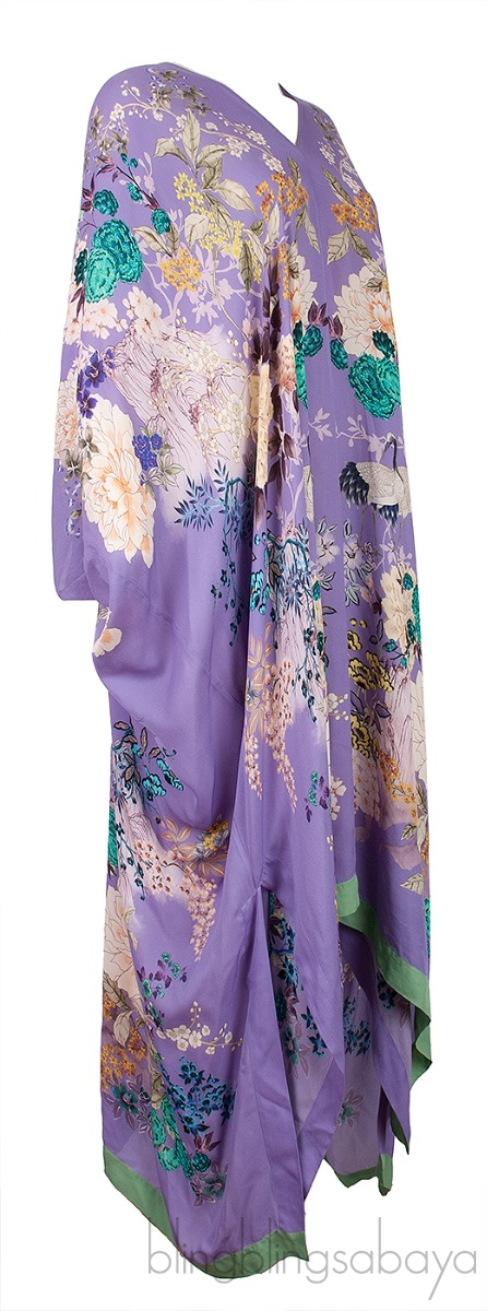 Purple Floral Print Silk Kaftan Dress from Meng!