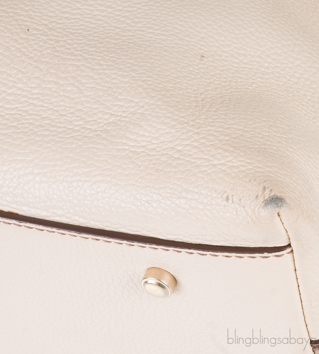 This Python Trimmed Marcello De Cartier Bag from Cartier is crafted from off-white leather trimmed with natural python leather and accented with matte light gold hardware.