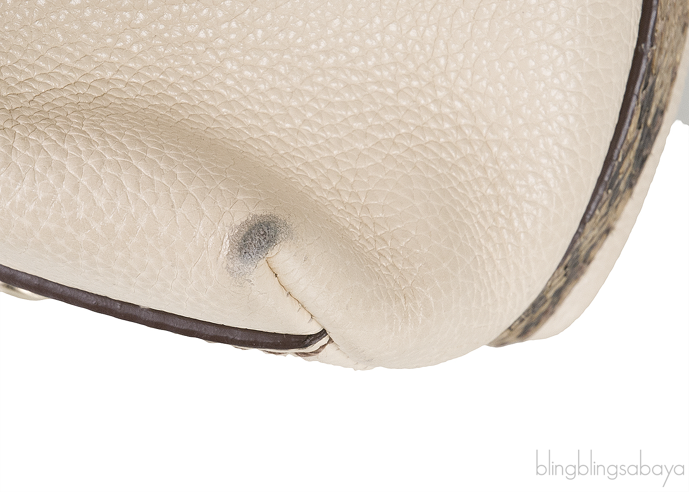 This bag features a quilted cc logo at front and has two dual top handle and optional shoulder strap. It has a top zip opening that gives access to a roomy interior fully lined with brown canvas and has one zip pocket inside.