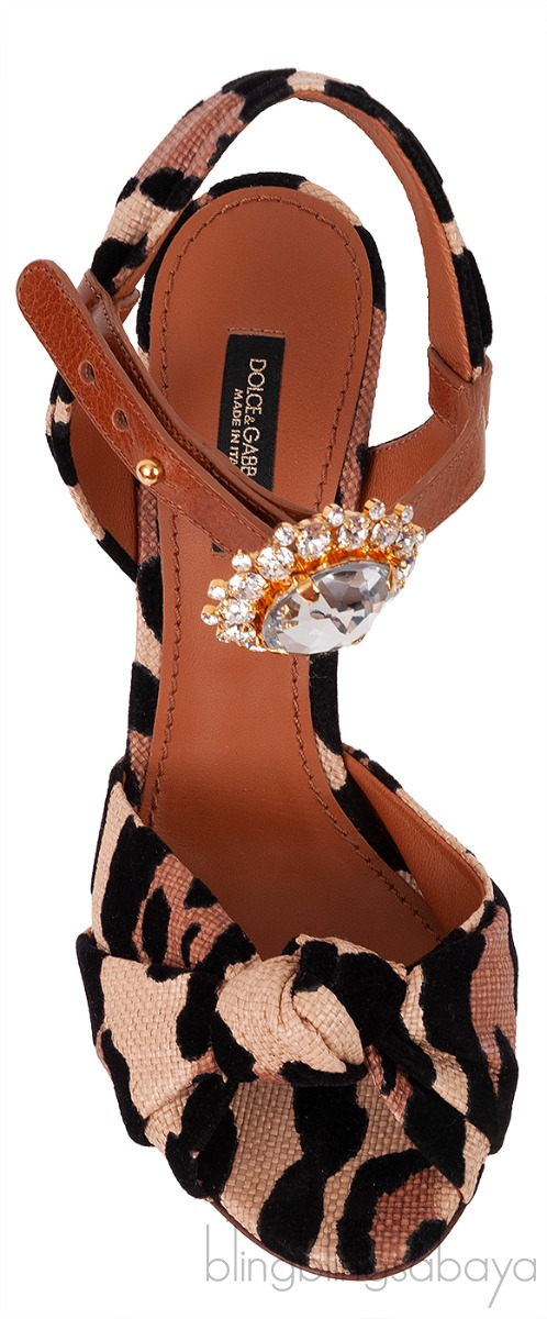 Dolce & Gabbana Raffia Leopard Print Bejeweled Buckle Sandals!