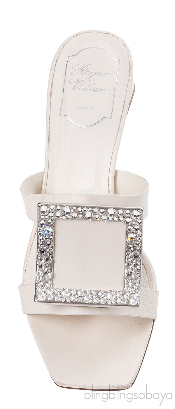 Roger Vivier Off-white Crystal Square Toe Mules!