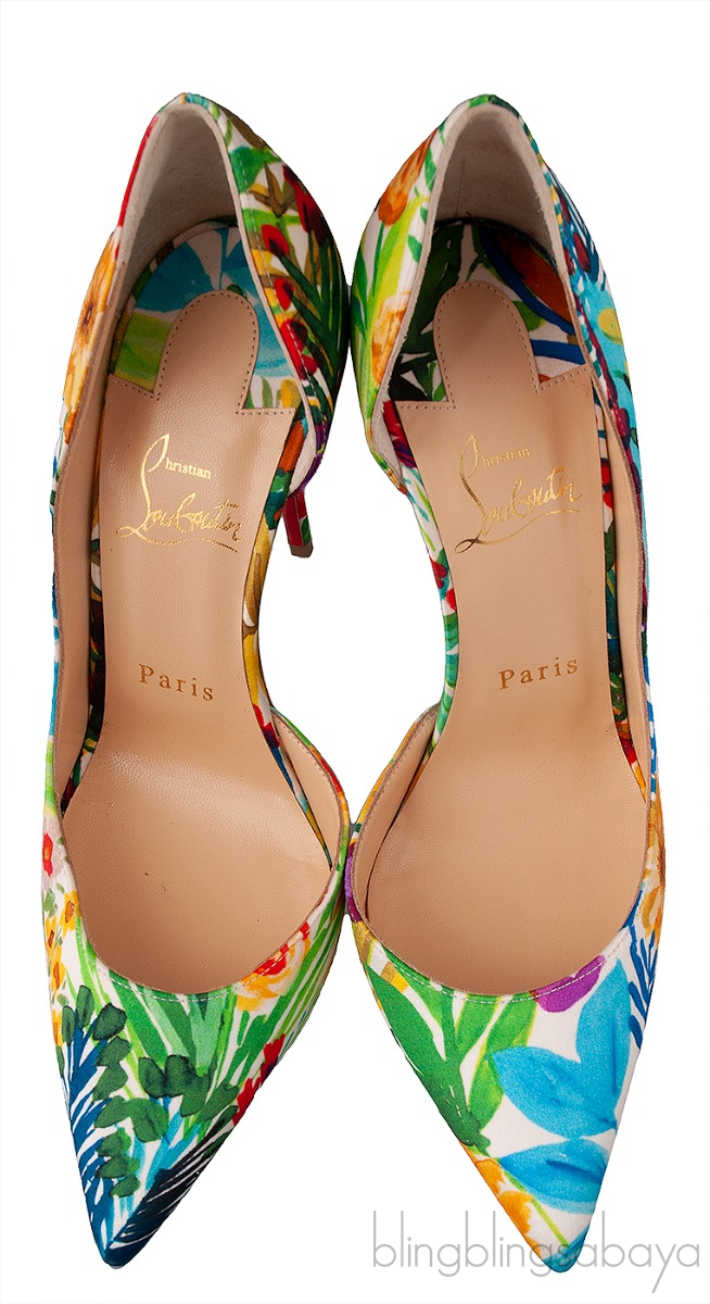 These Satin Floral Iriza Pumps 100 from Christian Louboutin are crafted from satin fabric upper with nude leather lining. These heels features a multicolor floral print upper, pointed toe, leather lined insole, sky-high stiletto heel measuring 100 mm high and signature red leather sole.