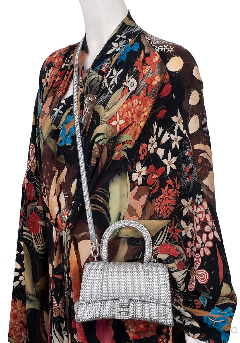Silver Hourglass XS Rhinestone Suede Calfskin from Balenciaga!