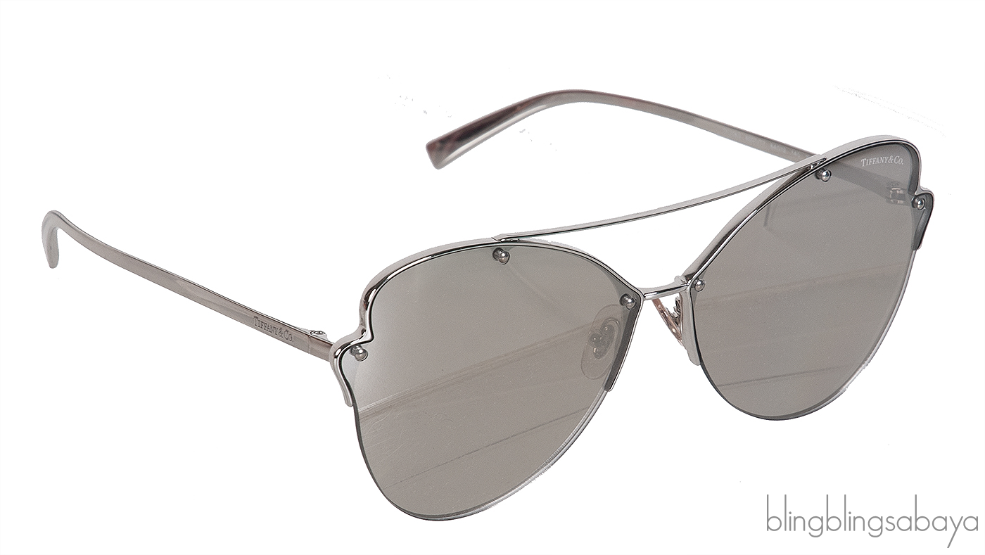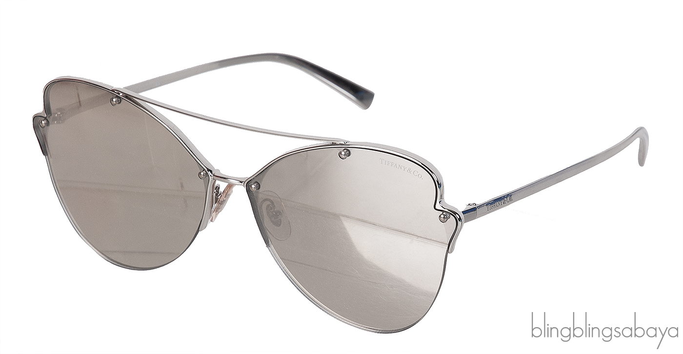This Tiffany & Co TF 3063 Butterfly Sunglasses features a stunning butterfly silhoutte with metal frame, mirrored lens and silver metal temple with T stamp at tip.