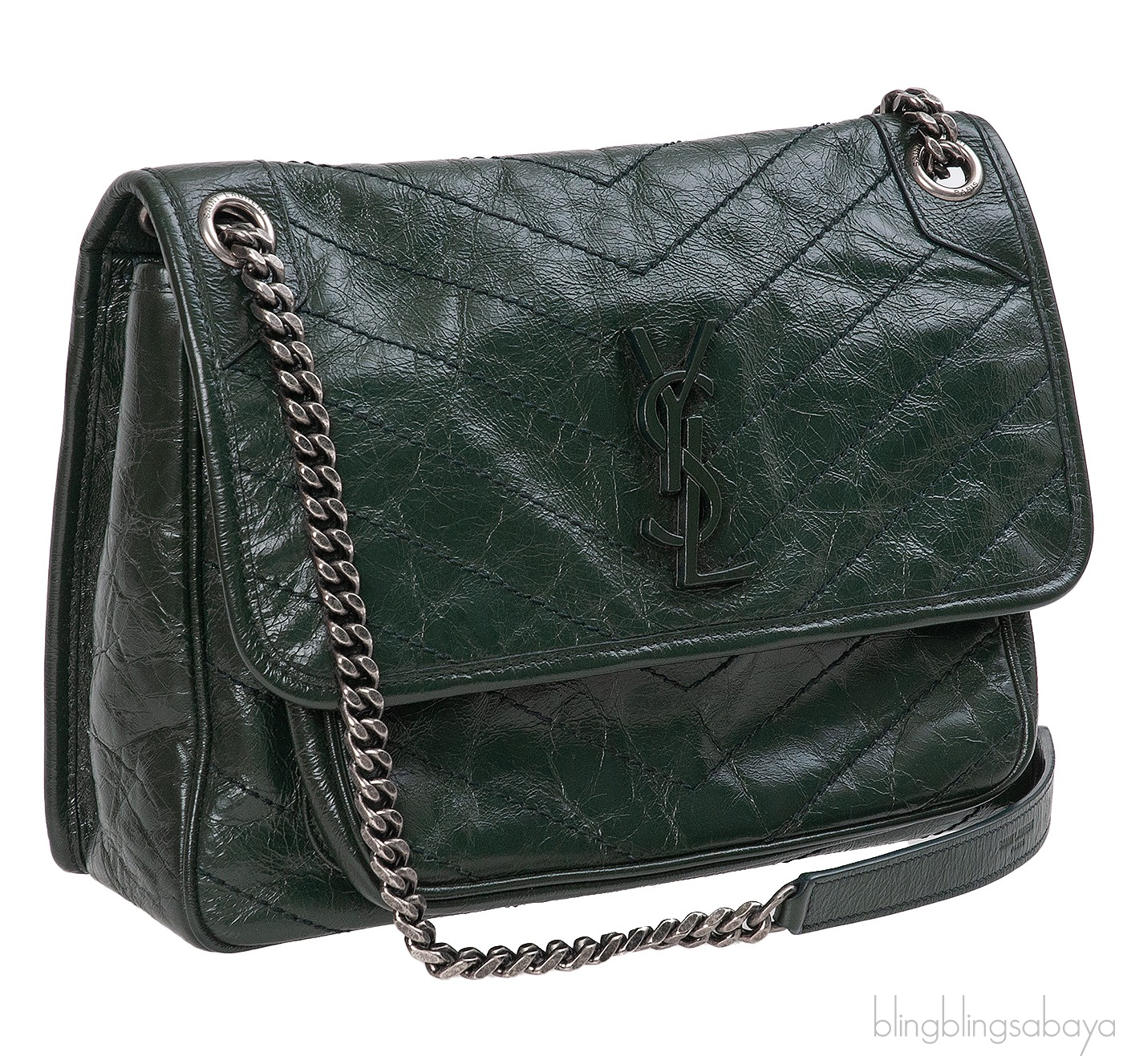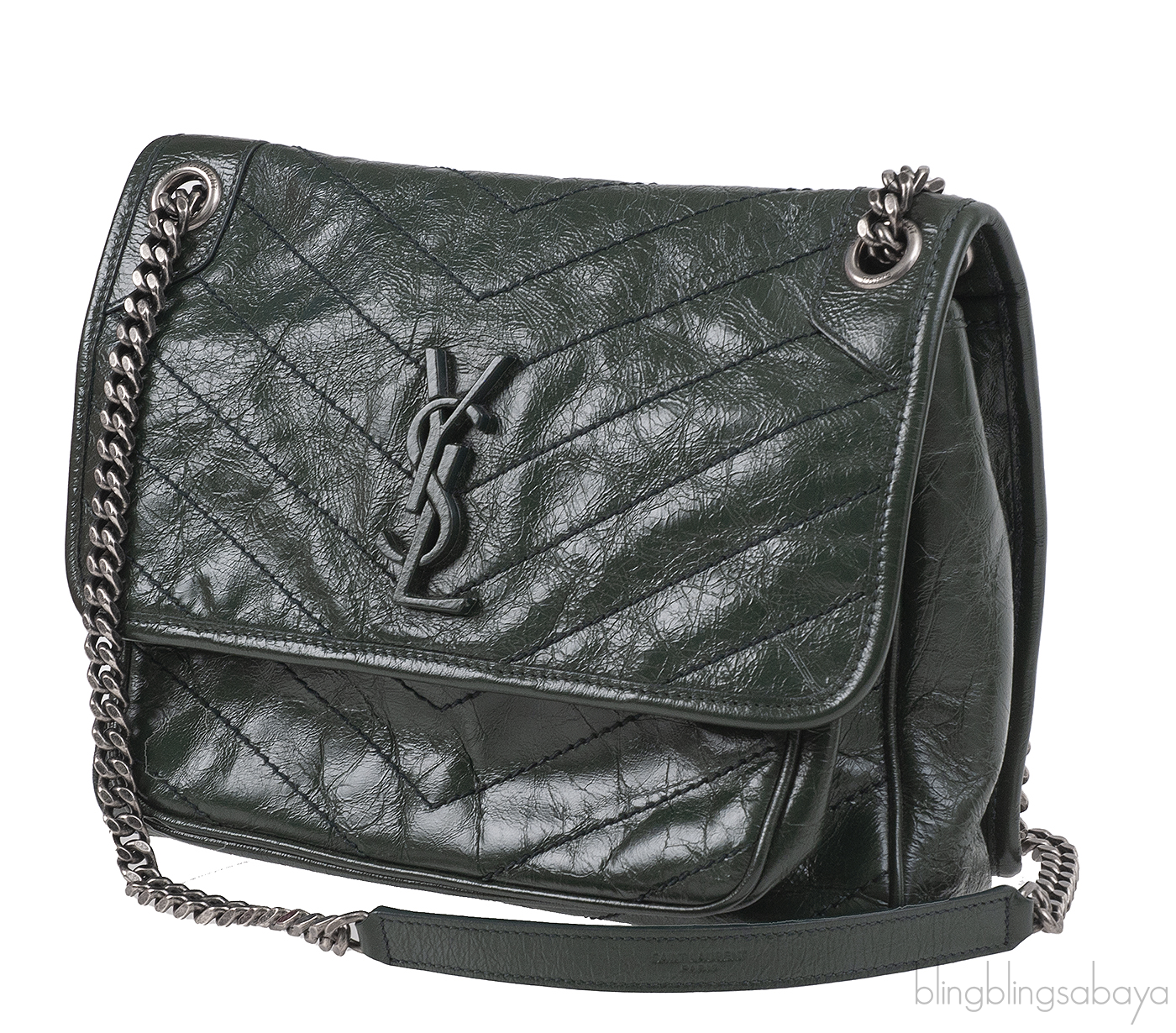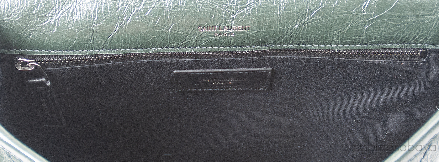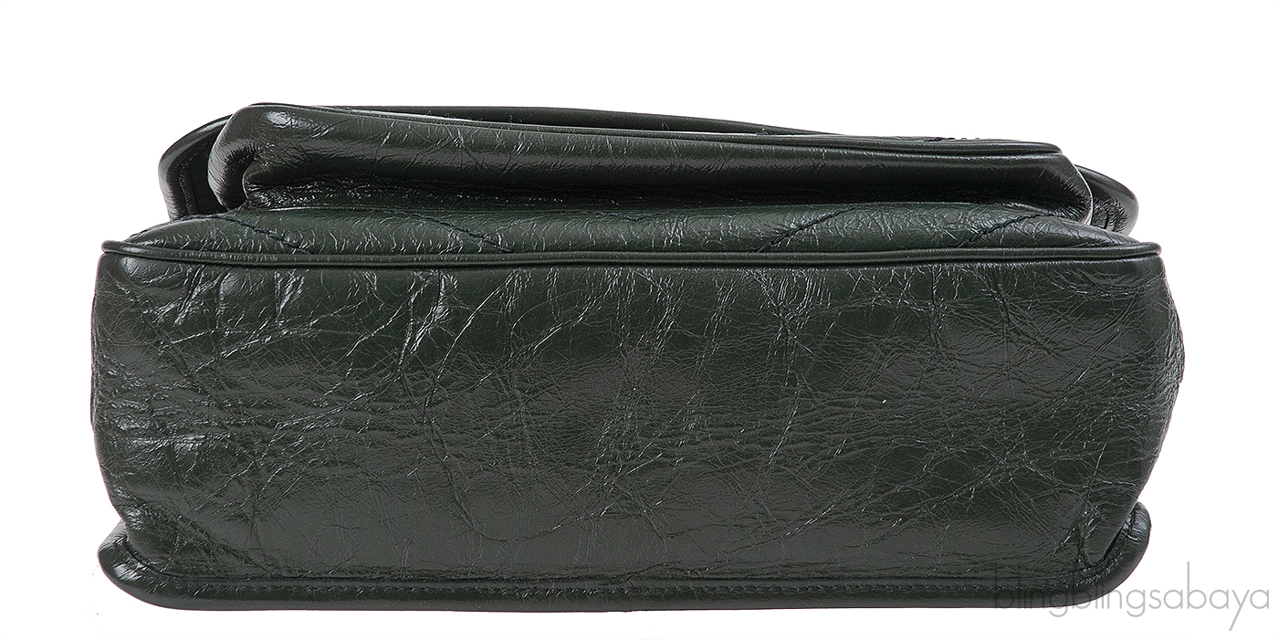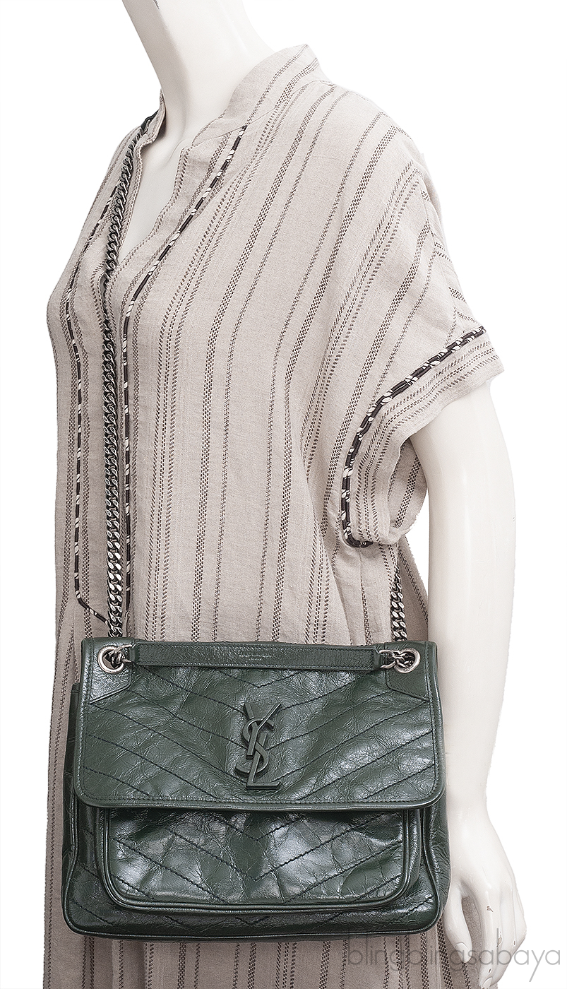 Yves Saint Laurent Nikki Forest Green Medium Crinkled Leather Shoulder Bag