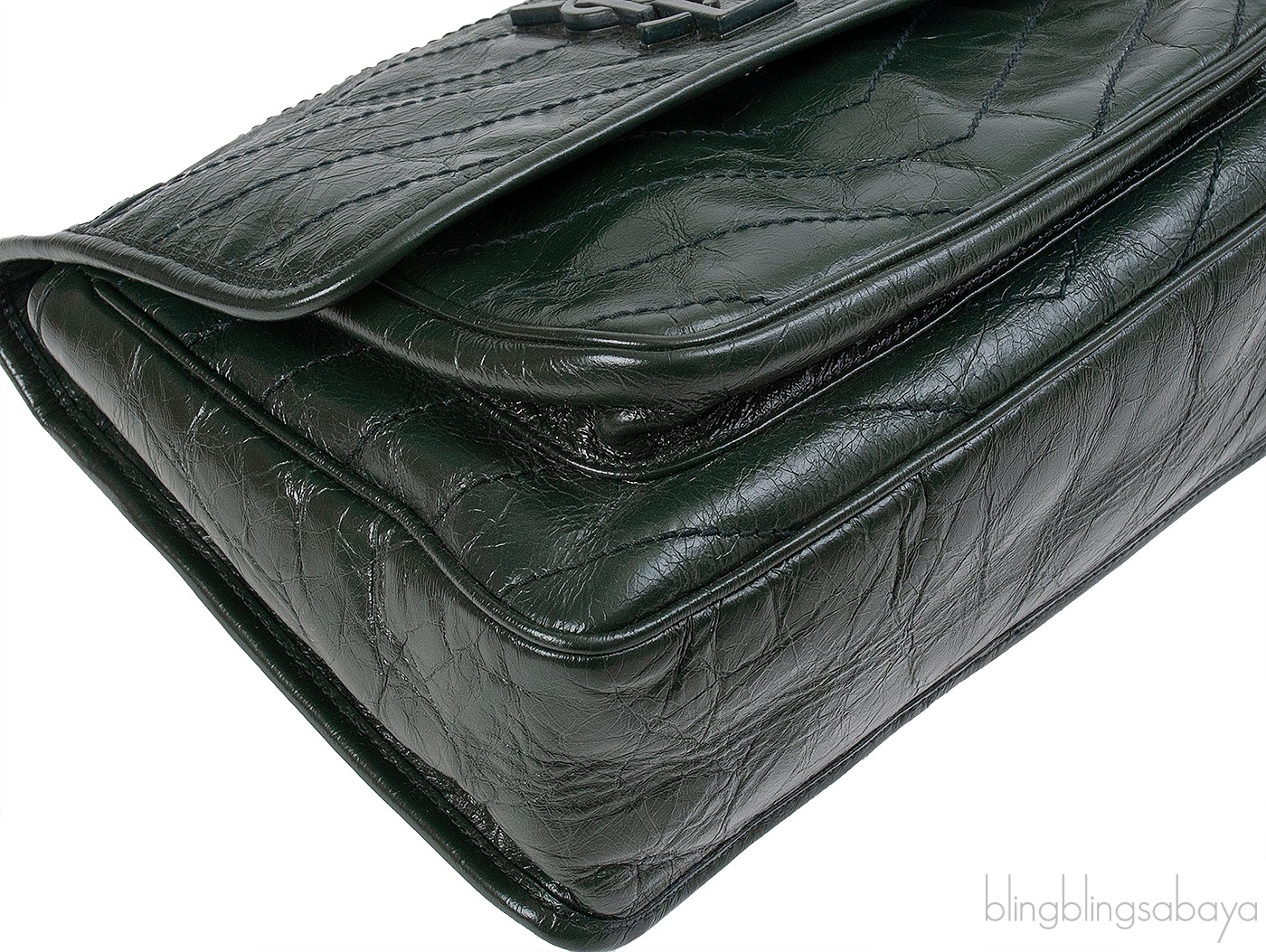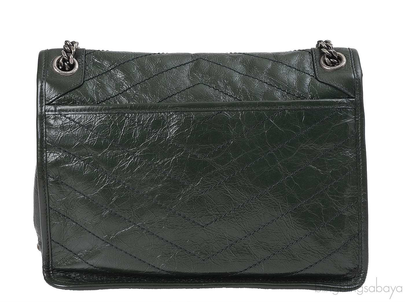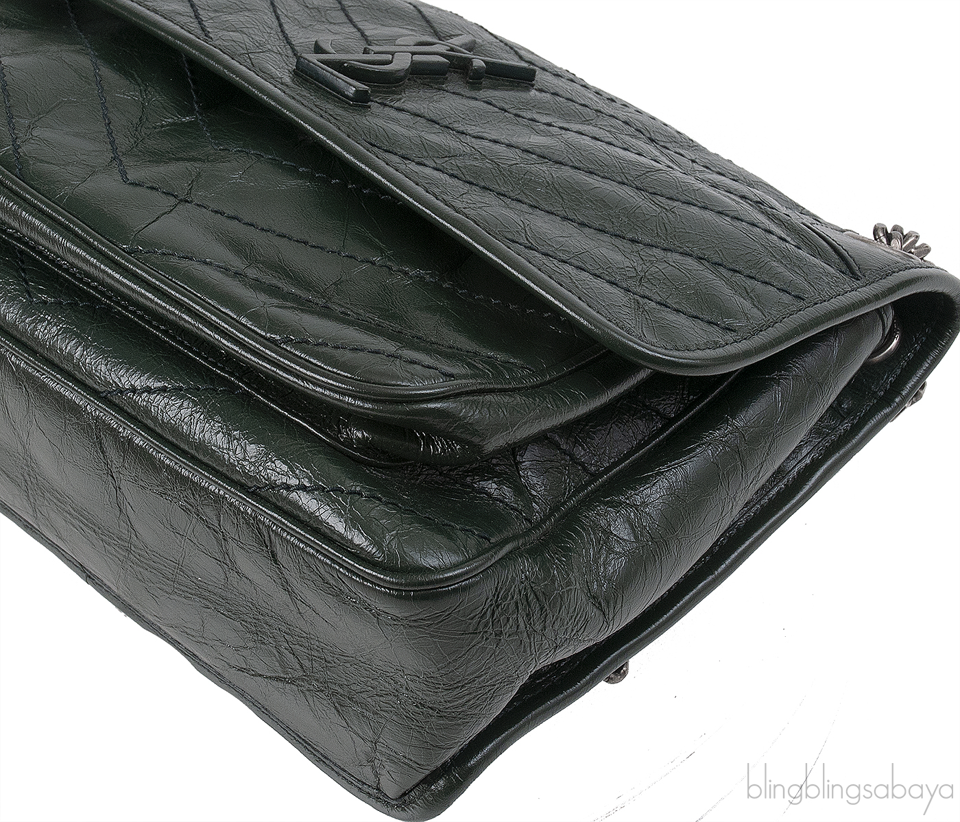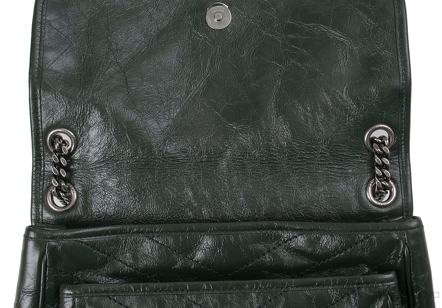 Yves Saint Laurent Nikki Forest Green Medium Crinkled Leather Shoulder Bag
