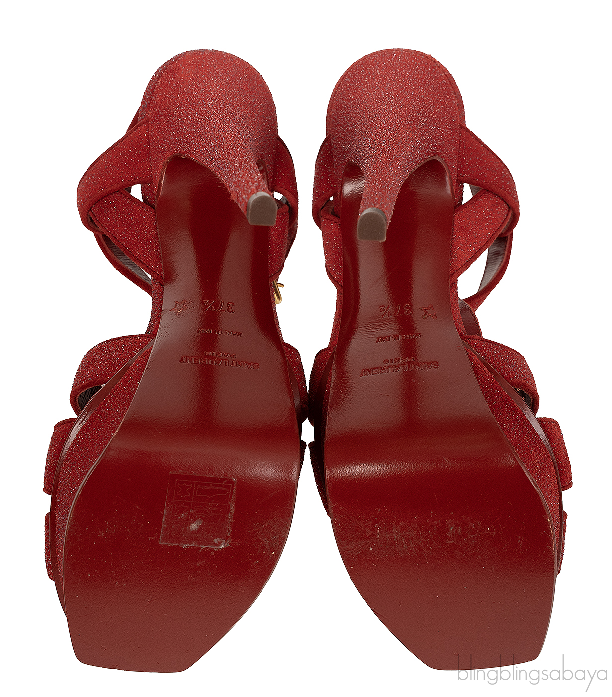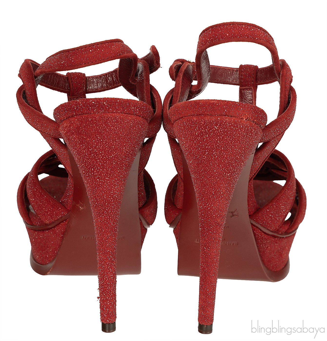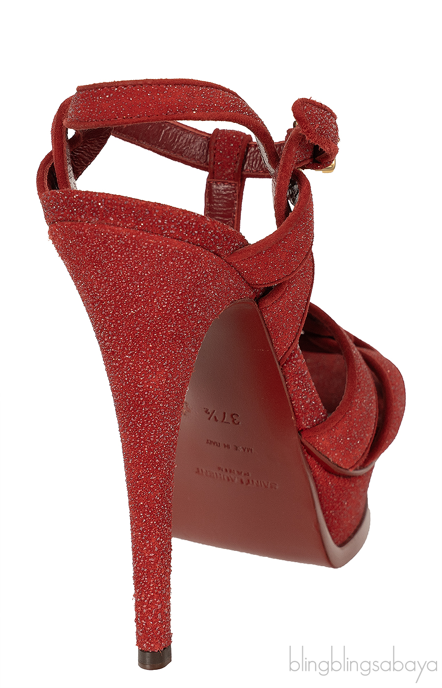 Red Glitter Finish Tribute Sandals from Yves Saint Laurent!