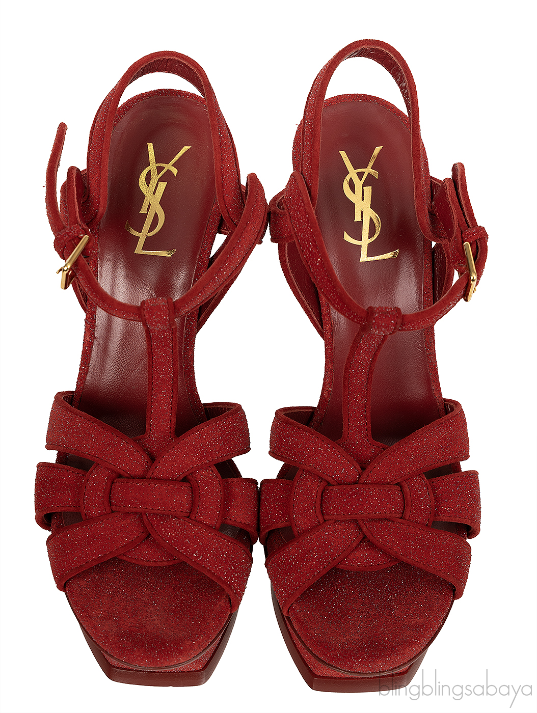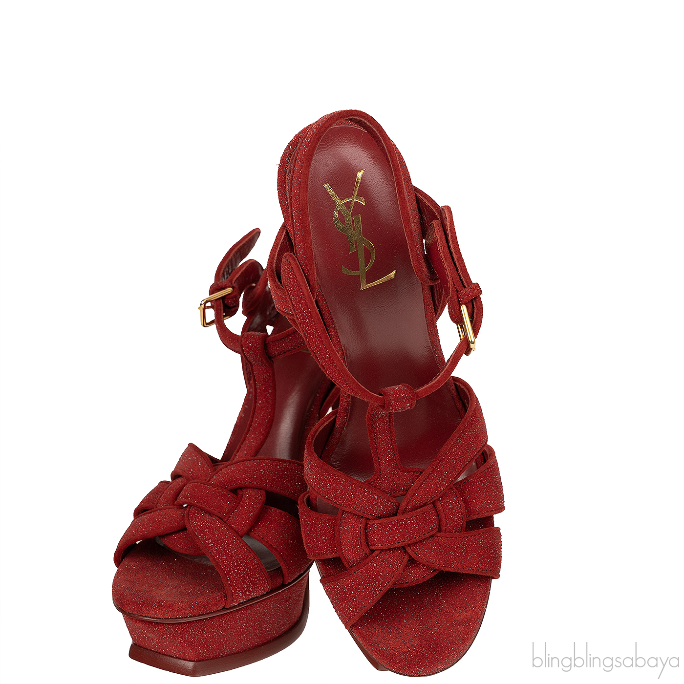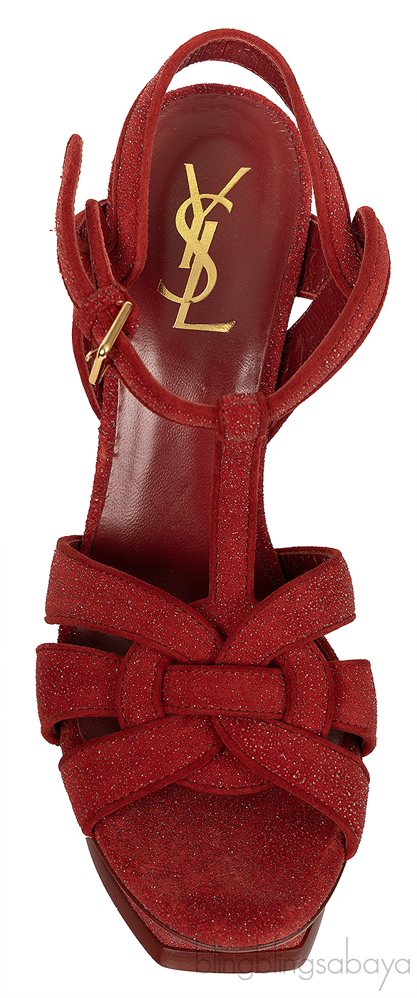 Red Glitter Finish Tribute Sandals from Yves Saint Laurent!