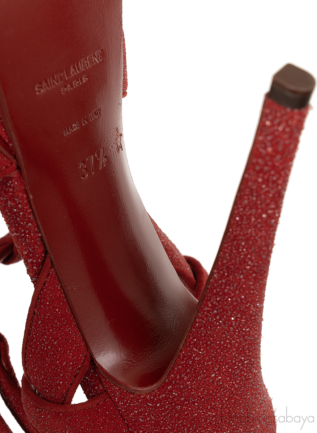Yves Saint Laurent Red Glitter Finish Tribute Sandals 37.5
