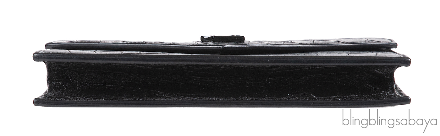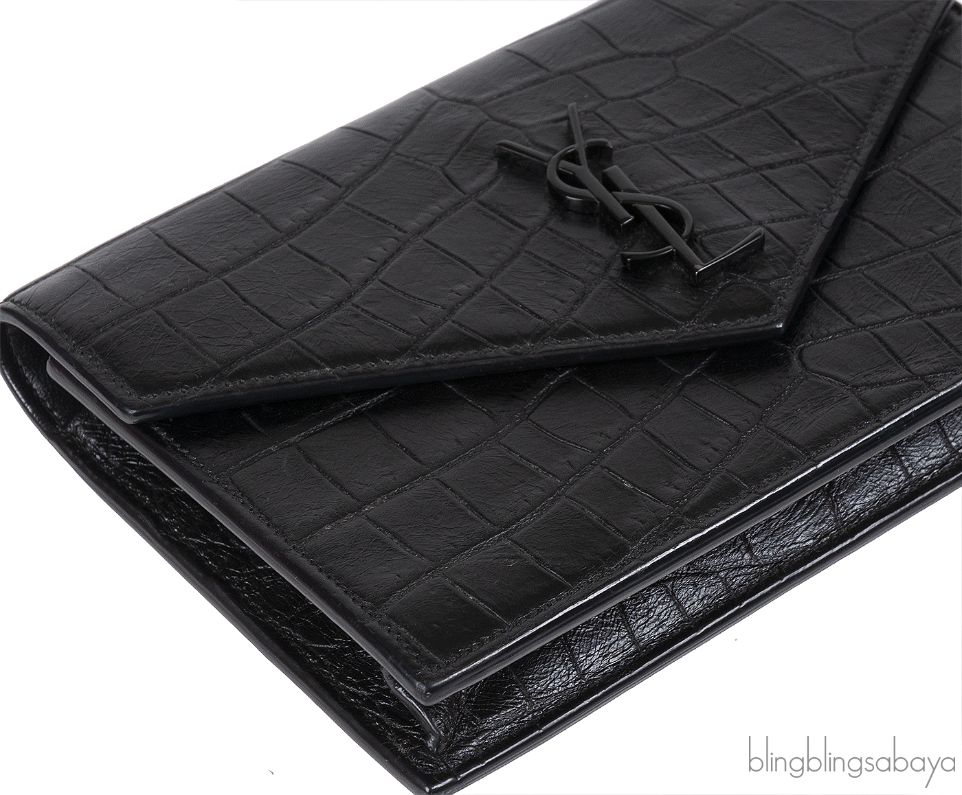 This So Black WOC Croc Print from Yves Saint Laurent is made of crocodile print black leather perfectly accented with the black metal hand wares.
